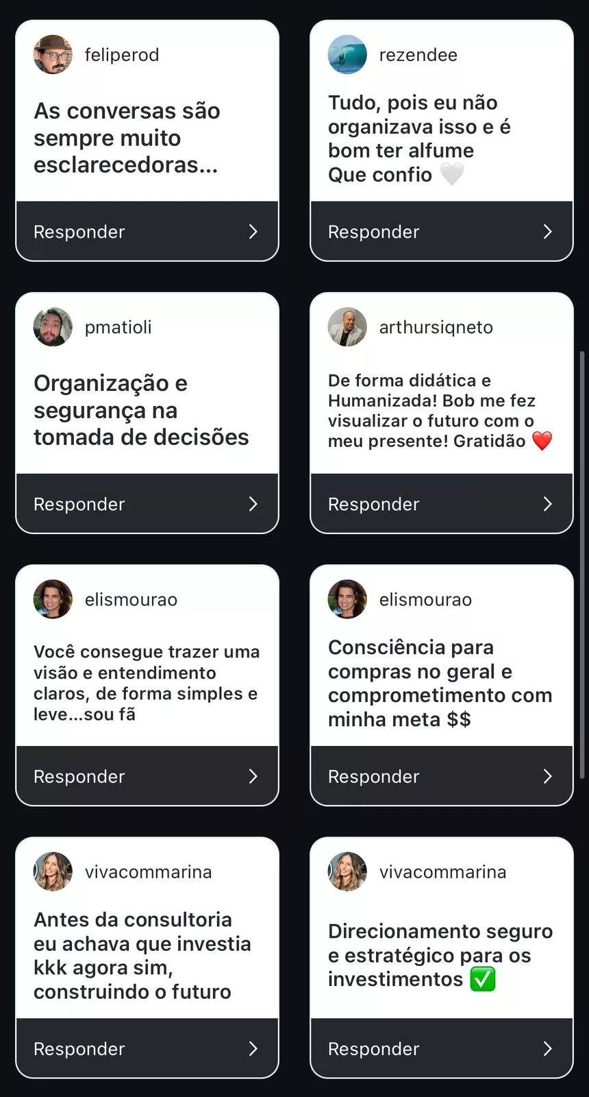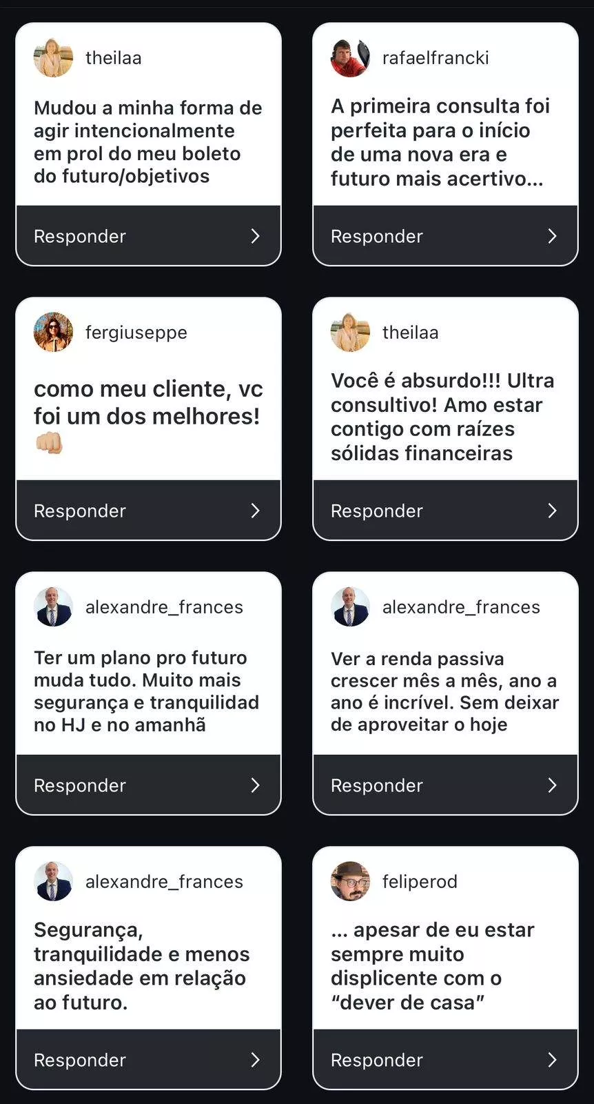 Sou um consultor financeiro com a certificação mais completa do mercado, o CFP (Certified Financial Planner) , pois tenho expertise nas seguintes áreas da vida de um cliente:
